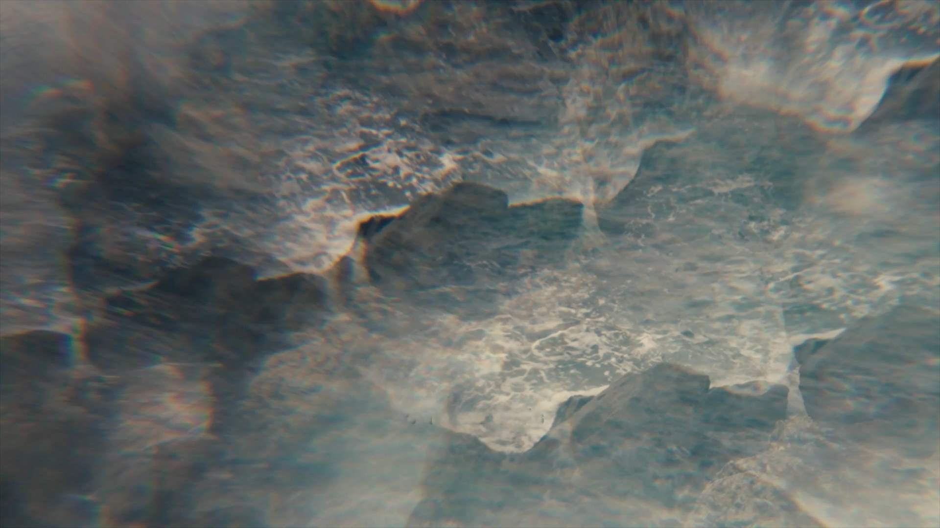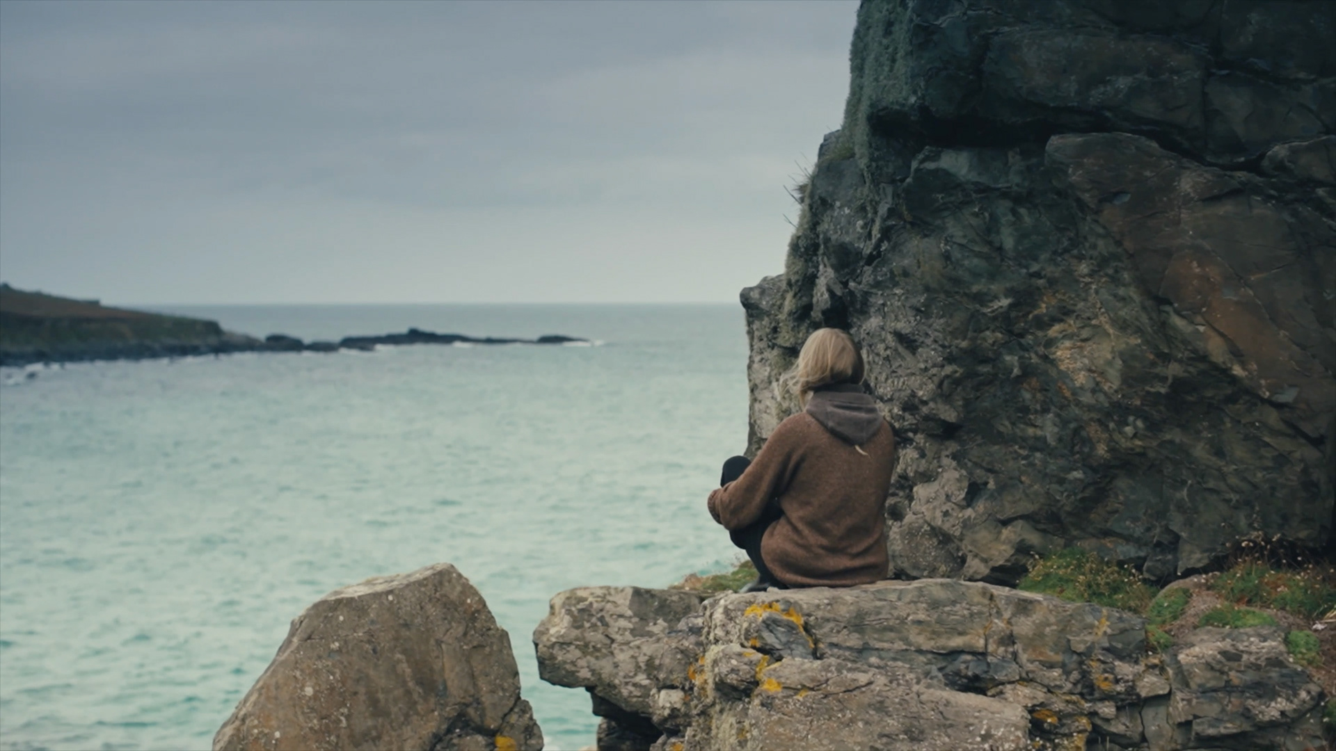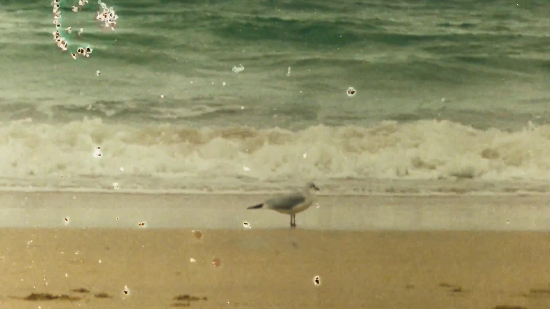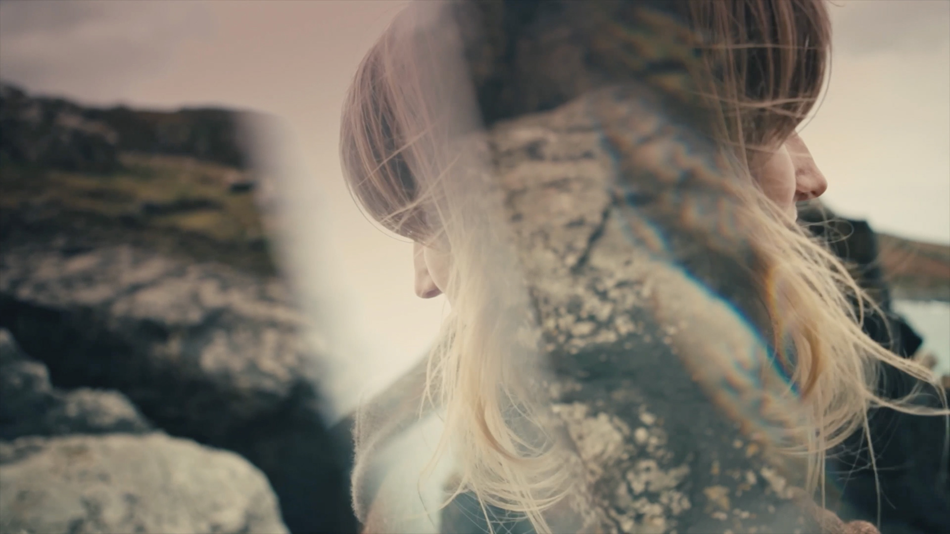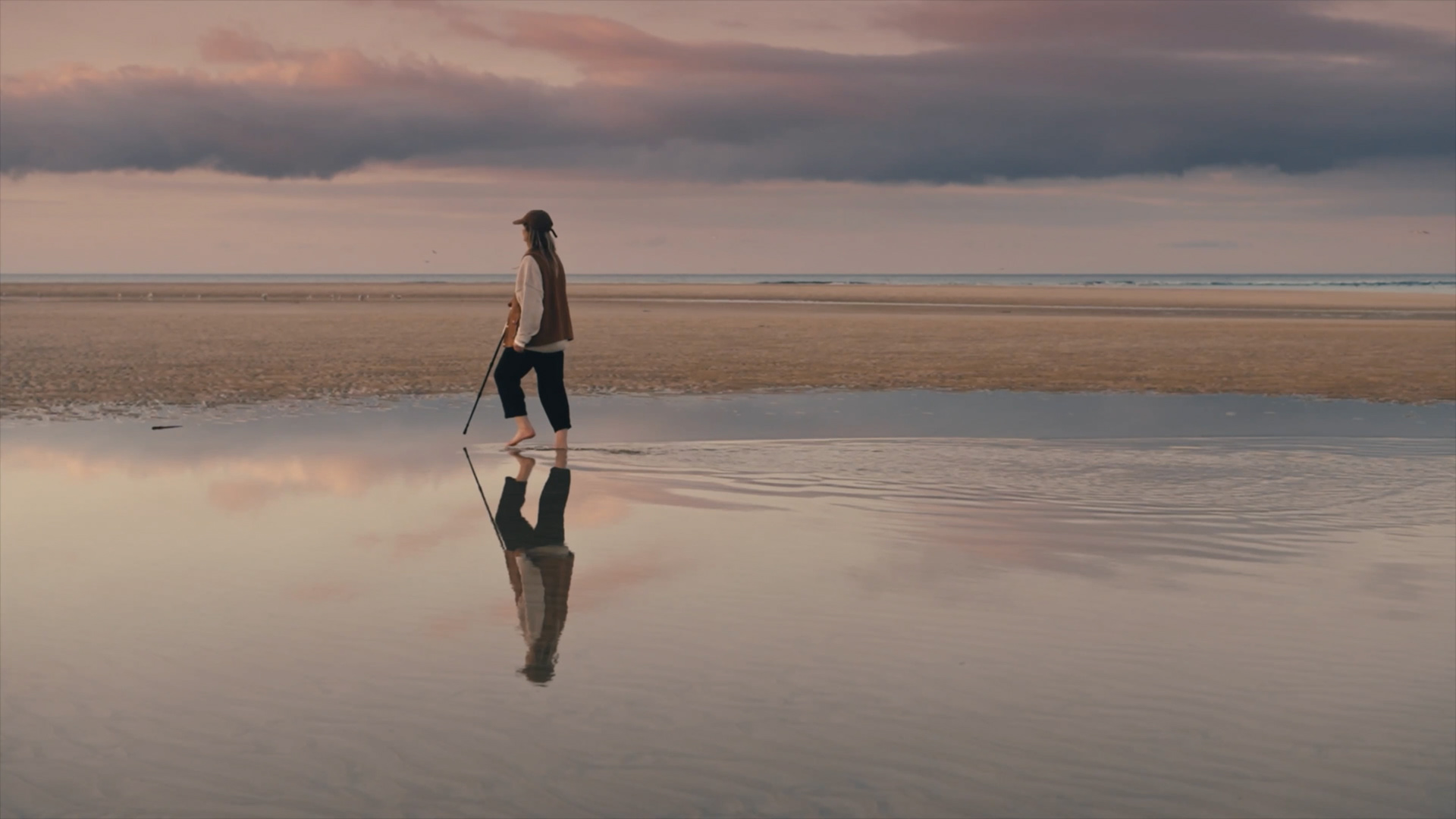 Shot party on 16mm, the film physically carries the place within it. The footage was hand-processed by Joanna Mayes using seawater collected from Porthmeor Beach in St Ives, Cornwall, allowing salt, sand and shell fragments to mark the images. This unpredictable process mirrors Alice’s embrace of uncertainty and imperfection throughout her journey.